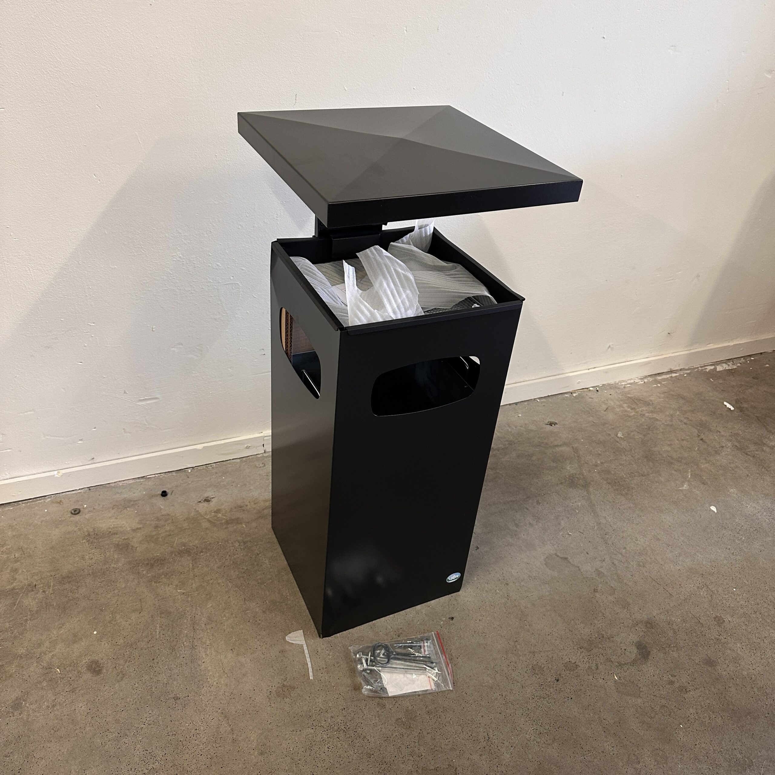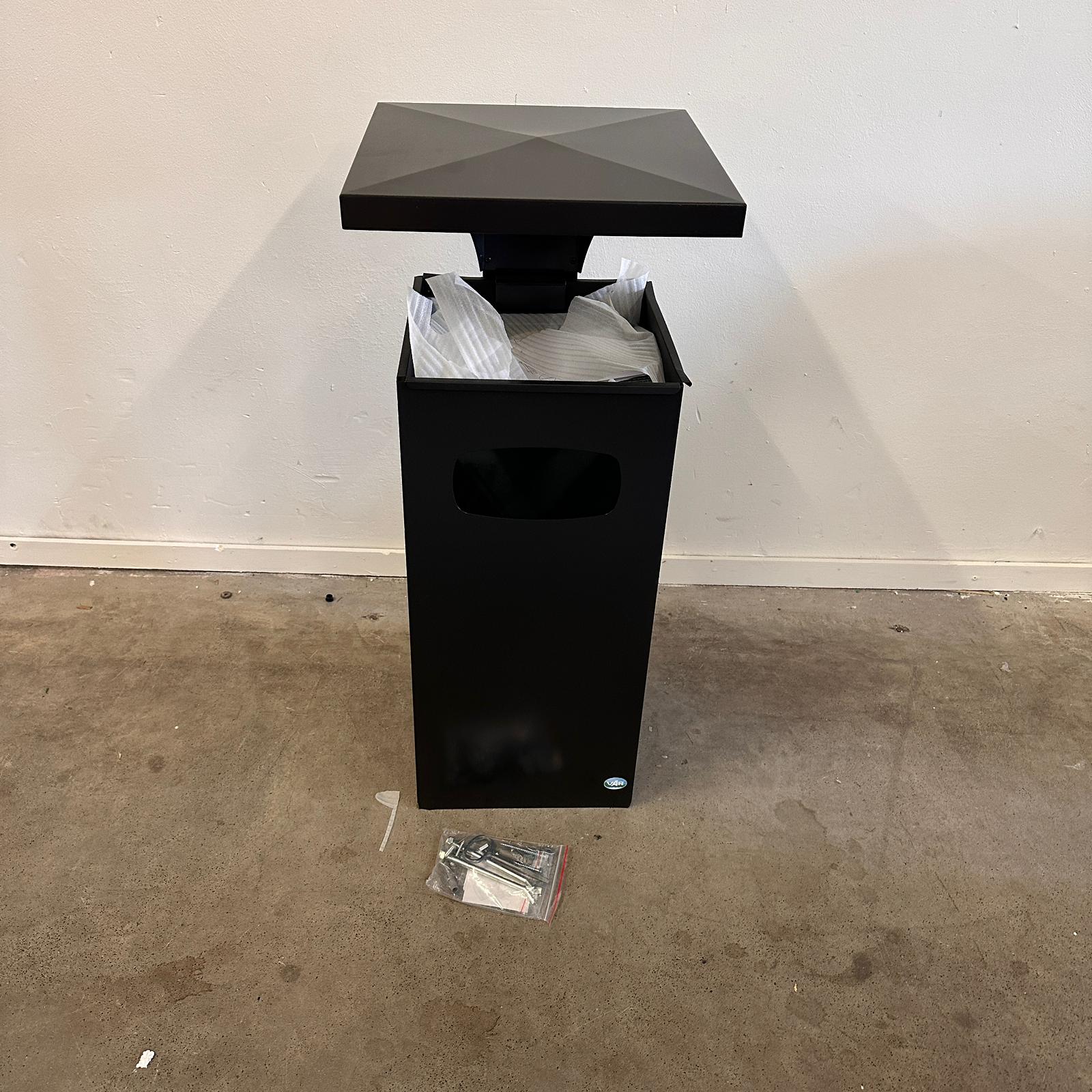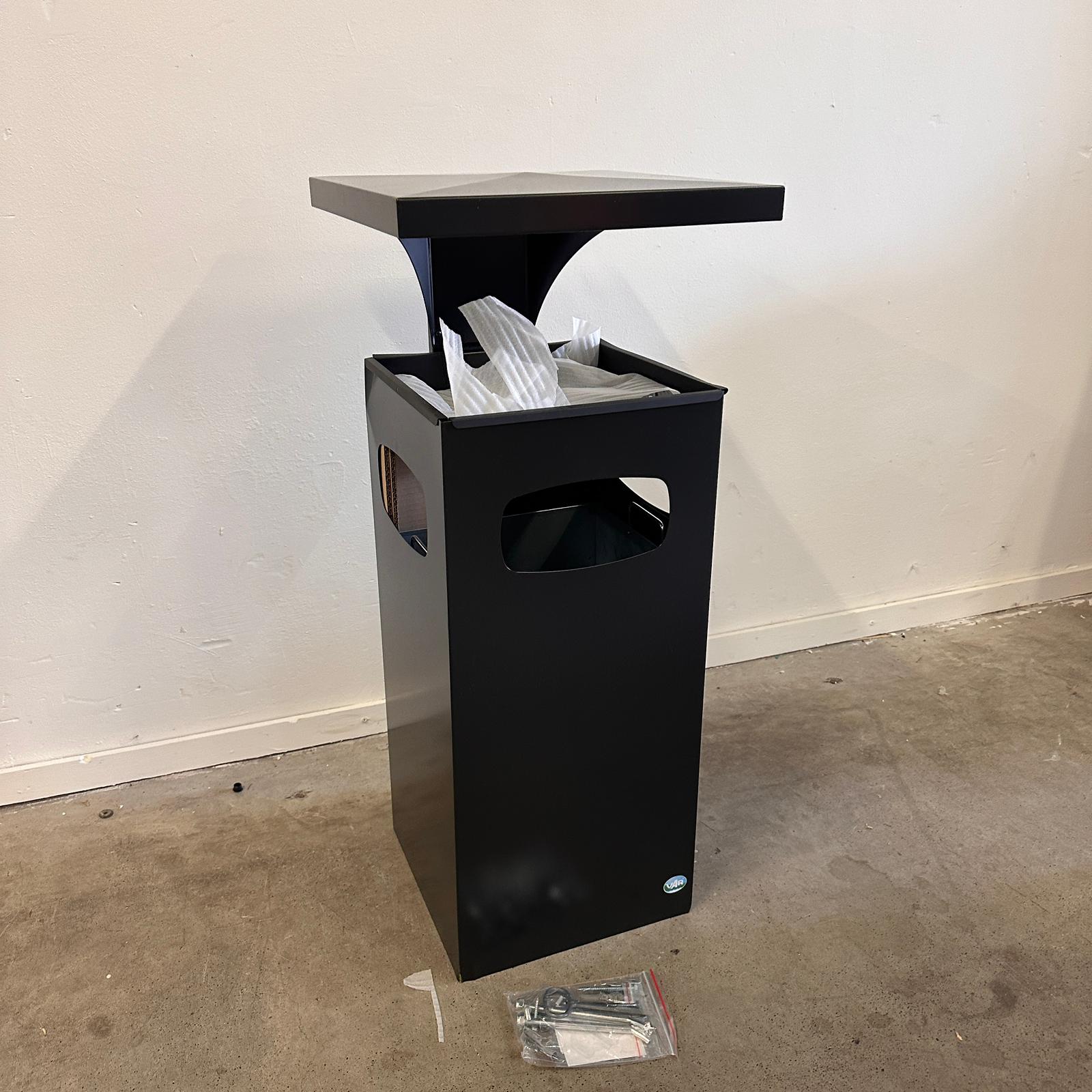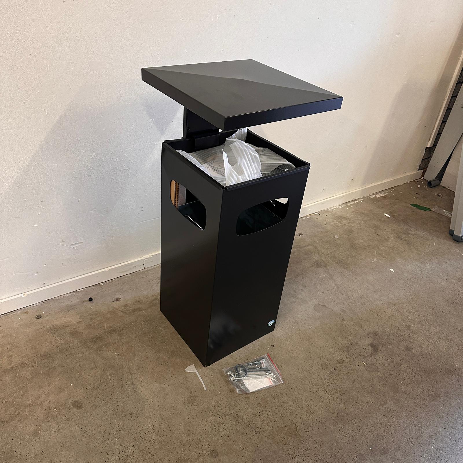 - As-afvalbak Manutan met verstevigd en afneembaar dak en 3 openingen.