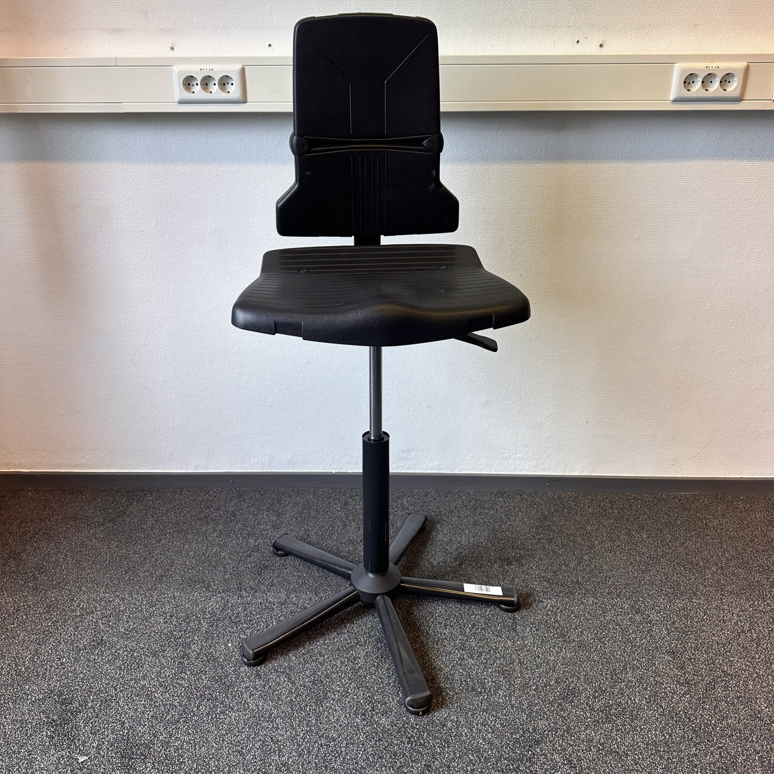 De SINTEC werkstoel van bimos is gemaakt van staal en hoogwaardige kunststof in de kleur zwart en overtuigt met talrijke ergonomische eigenschappen en is daarmee de perfecte oplossing voor werkplekken in industrie, productie en laboratoria. Het is een basismodel zonder armleuningen en zonder stofferingselement.