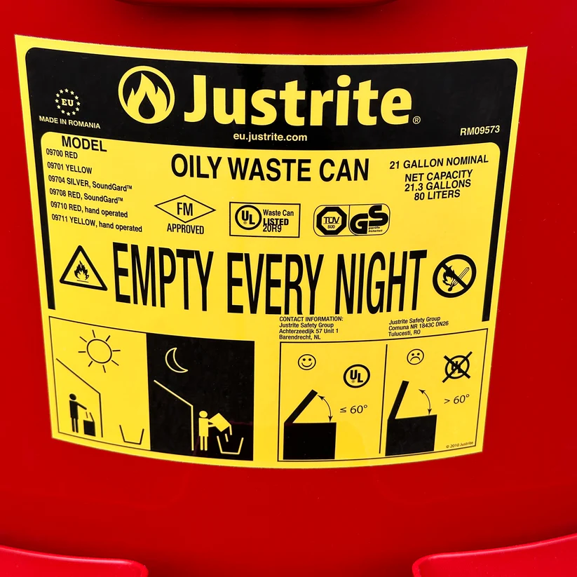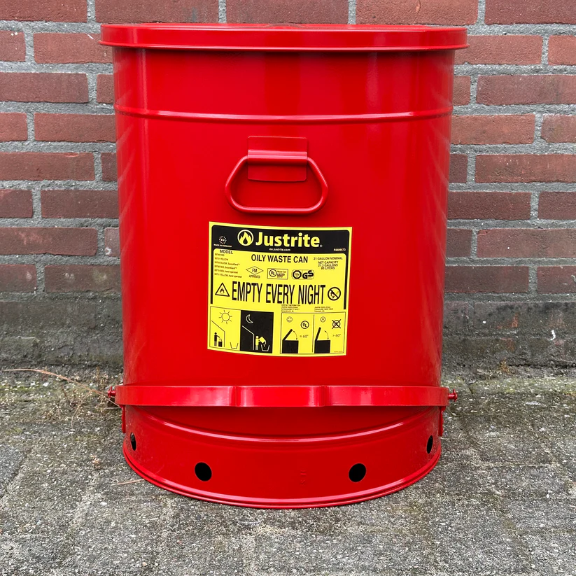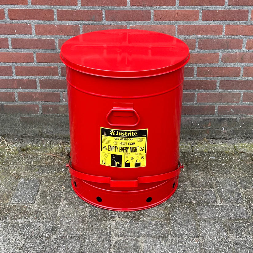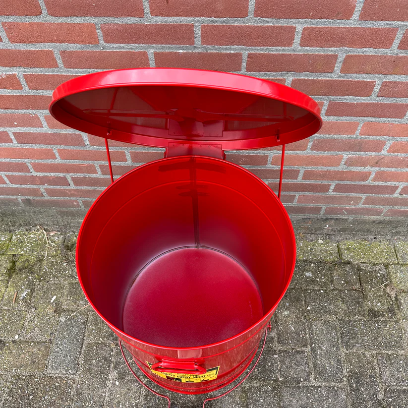 - Veiligheidscontainer, perfect voor het weggooien van doordrenkte doeken die brandgevaar opleveren.