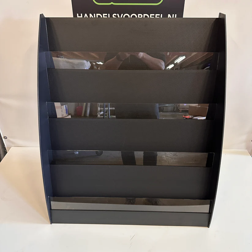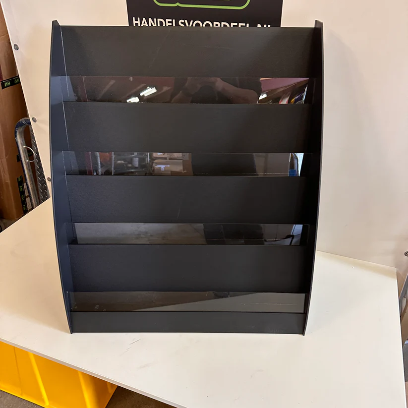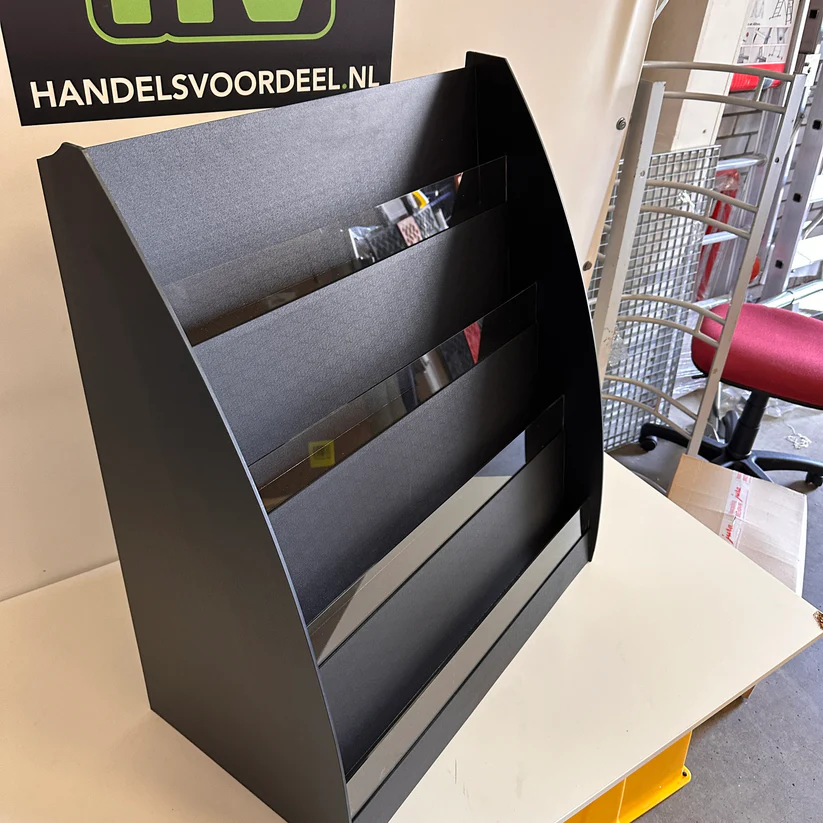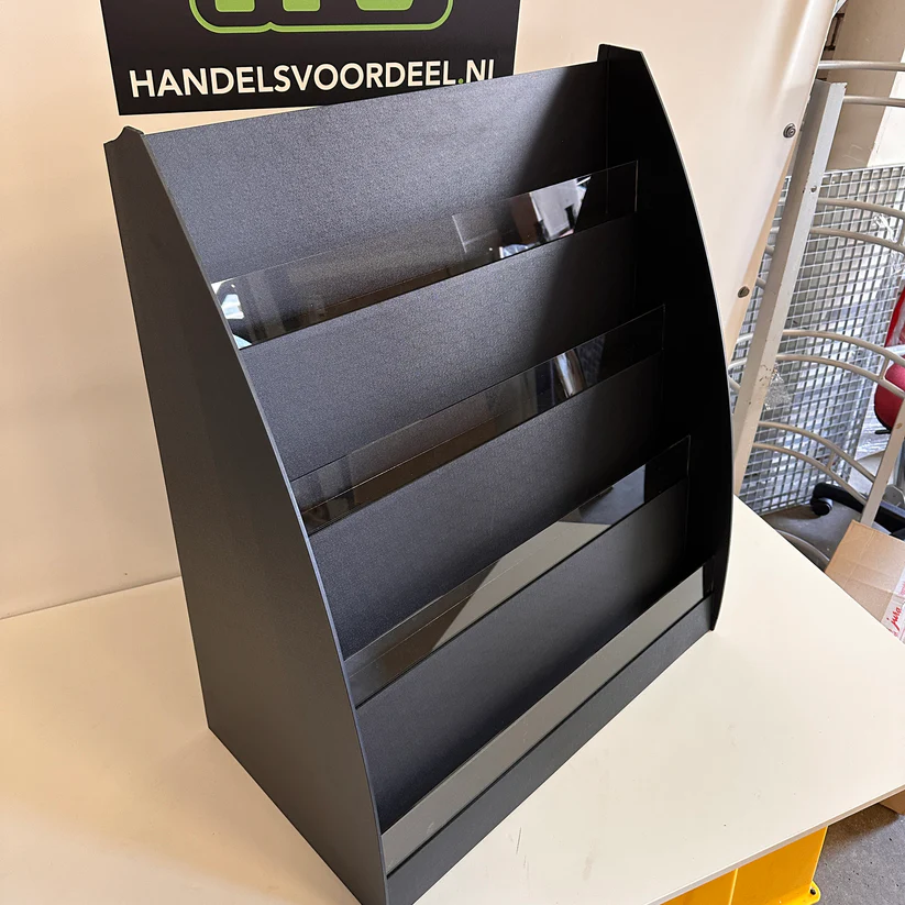- Folderstandaard met grote capaciteit dankzij de 4 niveaus en opstaande kunststof rand.