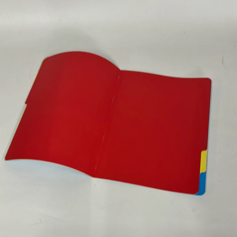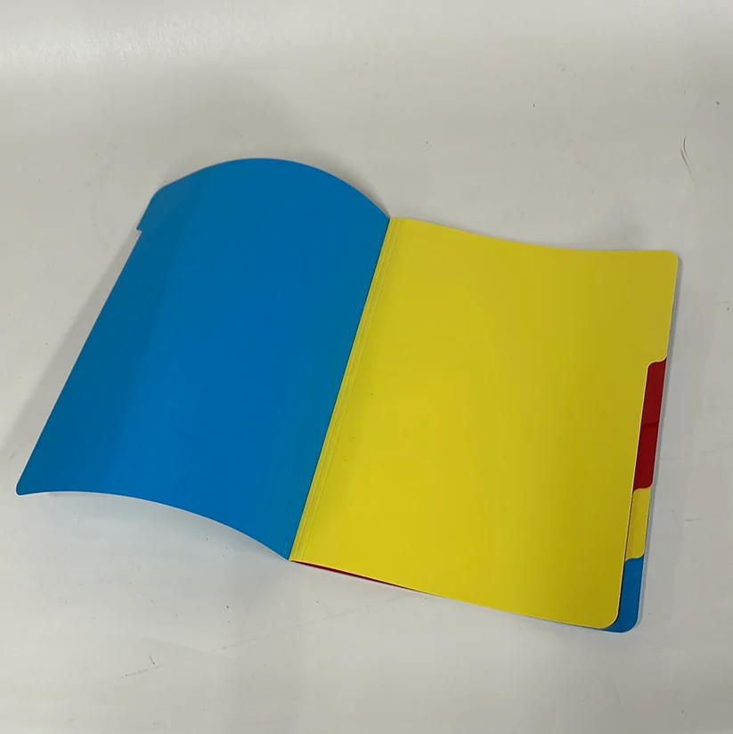 - Tabs met een vaste kleurvolgorde (blauw, geel, rood).