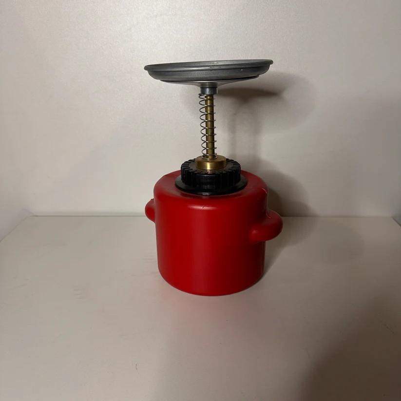 - Door de dasherplaat naar beneden te drukken komt er een kleine hoeveelheid vloeistof vrij om sponzen of lappen eenvoudig te bevochtigen en wordt voorkomen dat gevaarlijke vloeistoffen morsen.